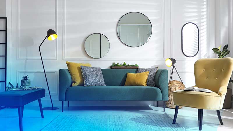 Espelhos nas paredes refletem a luz do ambiente, seja ela natural, seja ela artificial. Posicionar esses elementos em locais estratégicos — perto de portas e janelas, por exemplo — é uma ótima ideia.